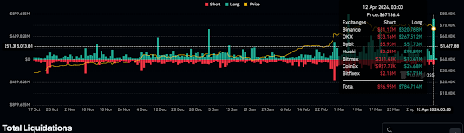ในช่วงราคาเปิดของนิวยอร์ก Bitcoin ตกลงไปที่ 65,086 ดอลลาร์ ทำให้เทรดเดอร์หลายๆ คนตกใจ ข้อมูลจาก Coinglass บอกว่ารวมแล้วมากกว่า 881 ล้านดอลลาร์ ได้ถูก liquidate Long อยู่ที่ 784 ล้านดอลลาร์ และ Short อยู่ที่ 96 ล้านดอลลาร์