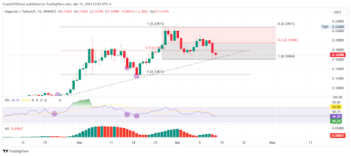 ถึงแม้ว่าราคาของ DOGE จะลดลง แต่ก็ยังสามารถยืนอยู่เหนือระดับแนวรับที่สำคัญ ระดับนี้เคยเป็นโอกาสในการซื้อที่ดีมาก่อน และด้วยรูปแบบแท่งเทียนในตอนนี้ DOGE อาจเริ่มกลับขึ้นแรงอีกครั้ง
